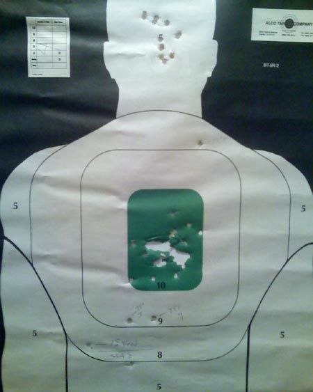- These rounds were fired from 75 feet with a handgun. Extreme range, good accuracy. You can see where the first few zeroing rounds landed out in the boonies. PRACTICE!