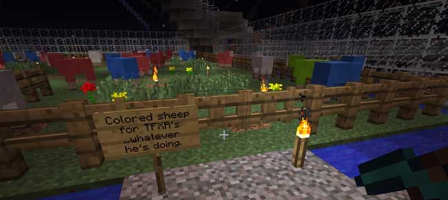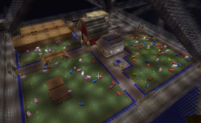 As part of our program to replace the Resource Hut, saravog and Alec got to building the urgently-needed farm. The crops of the old hut were sorely missed since an adequate replacement hadn’t been built yet. The farm not only serves the pyramid with plenty of food, but also plenty of grazing land for the sheep that will provide the dyed wool for our main navigation aides around the pyramid (the place can be pretty difficult to navigate at times!).