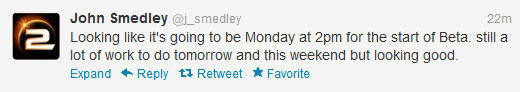 According to John Smedley, the crew will be at it all weekend (if they need pizza or energy drinks, let us know, John…We’ll contribute to the “get it done fund”) and aren’t going to rest until they’re ready to launch the beta which seems to have the whole world holding its breath.