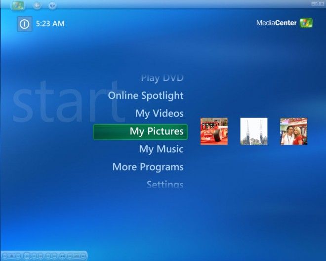 The first version of Windows Media Center, notice the Trebuchet typeface, common to Windows XP
