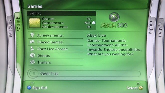 The original Xbox 360 “Blades” Interface (2005) Notice the Convection typeface, developed by Ascender for the console, would end up in Zune as well.