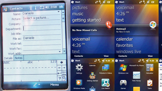 Left: latter-day PocketPC doing text entry, early to mid 00s. Right: Windows Mobile 6.5, the last major release before the epic reboot, circa 2009