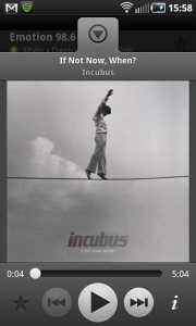 First off, I gotta say Spotify has the best Android widget and probably the best music app I’ve ever used. It replicates the home software almost to a T (that is, if you’re using the Premium version of the service) allowing for all the functionality you’d normally get at home while you’re on the go. For example, let’s say you’re on the go and want to find a song. You can, right there in the moment, search for the song and if you find the right one, just long-hold on the song and you can add it to your playlist. Not only does it add it to your playlist on your mobile, it automatically syncs it to your home service in real time. This is what Zune should’ve been doing a long time ago and it’s amazing that they still won’t be doing it in time for their new Mango update.