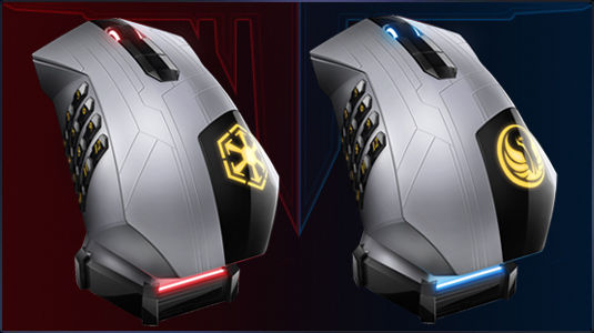 First off is the new SW:TOR edition, 17 button wireless gaming mouse of unholy death stabbing. This will be available in both Jedi and Sith colors and comes with the charging stand.