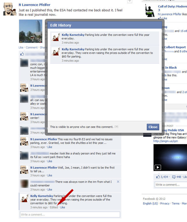 Facebook is now rolling out edit history across the board. What does that do exactly you might ask? Well, if you edit one of your comments it will keep a history of the changes for all to see. So if you are like me and quick to hit enter before you are done with thoughts then there will be a trail for everyone to look at. One thing I noticed was, if you delete a comment there is no history so might as well delete them and try again. That won’t help if you are trying to troll people though. Take a look at the screen shot below.