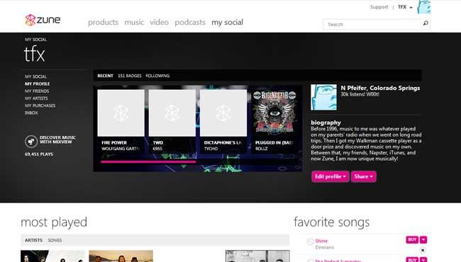 The web-based Zune Social implemented a lot of lessons from Xbox.