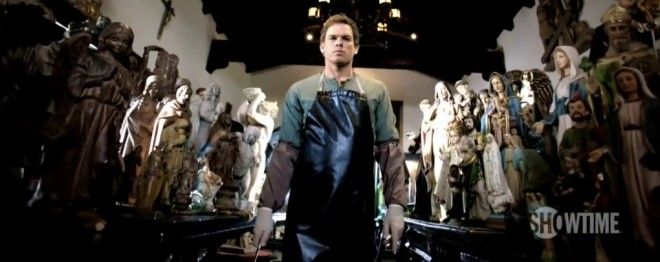 I’m also not a fan of the new direction they’re taking with Dexter’s kill rooms. It feels like a group of hipsters got their grubby thrift store mitts on the script and decided, “Hey, let’s crank the irony up to 12!” (because 11 is too mainstream). It’s not enough for Dexter to kill the killers while surrounded by artifacts of the victims. No, now the rooms have “themes.” Dexter kills a former high school jock atop a football scoreboard, for example. And this last episode, Dexter offed an old serial killer in his barcalounger. C’mon. Really? Do we need to add theming? How soon before Dexter shows up wearing twenty pieces of killer-appropriate flair on his suspenders?