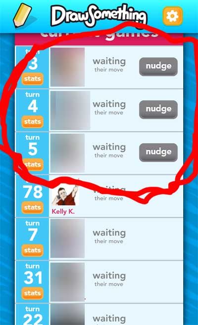 Okay, so I already mentioned that losing a streak in Draw Something doesn’t break the game, remove points, or otherwise penalize you. It just doesn’t, which is actually kinda weird from a gameplay perspective, but in reality, it’s all psychological. Would a line at your favorite restaurant or theme park be annoying if it were continually moving? No, it wouldn’t. Lines are annoying because you don’t go anywhere or you do it in stops and starts. Losing a streak is just like that, you’re having to stop and start again. It’s demoralizing that what was once 20-30 successful turns is wiped away because of a miscommunication. The more this happens, the less inclined people will be to play with you, or in a greater sense, be your friend at all. That’s right, you could lose friends because of Draw Something. People you thought you knew don’t know you at all. If it’s your spouse, they may un-spouse you. The end result is a horrible reality that you could’ve avoided had you simply read this guide first. There may already be victims, like the Island Of Misfit Toys you see above, who simply aren’t going to play with you, ever. Get rid of those people, cast them away like a graft of dead flesh!