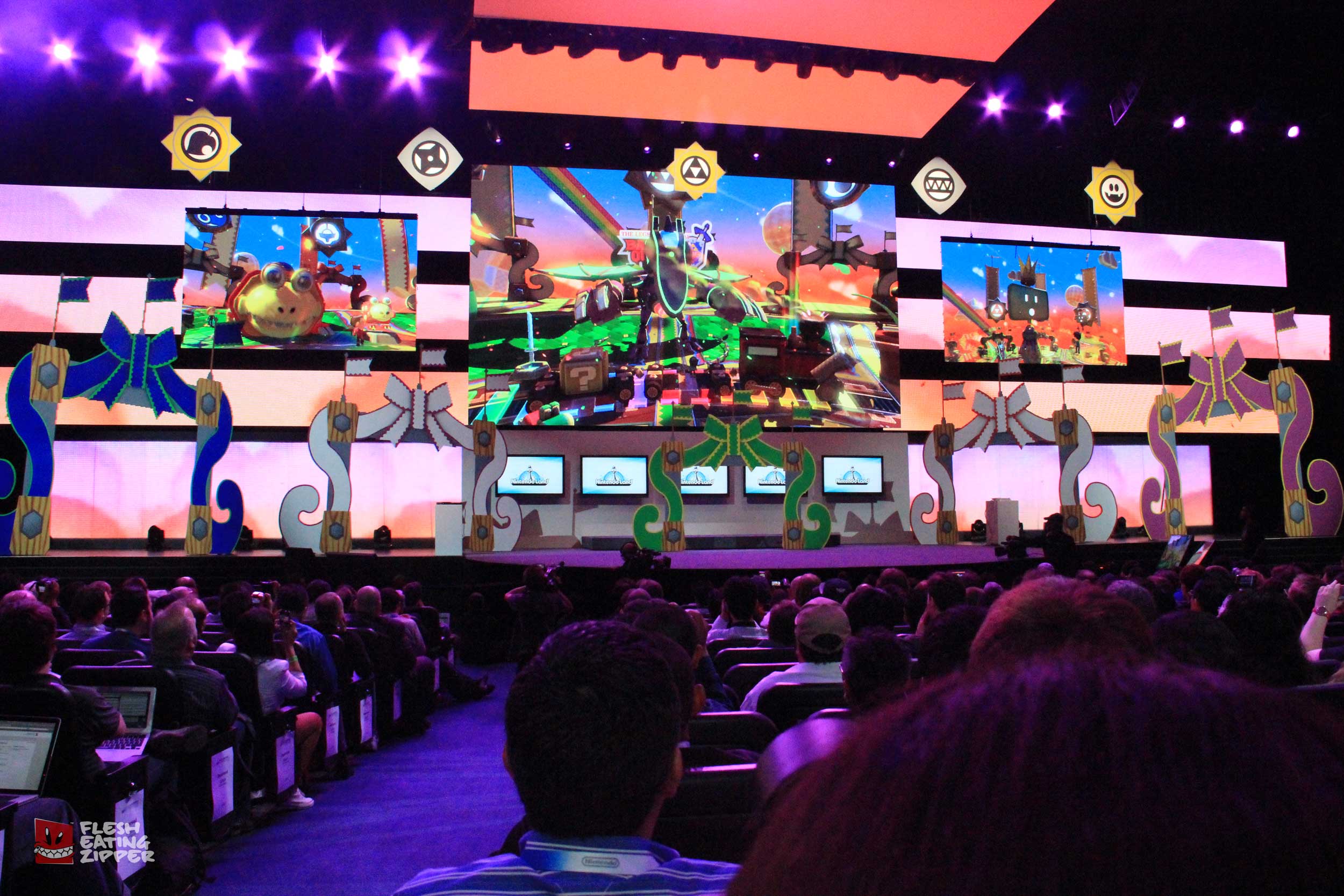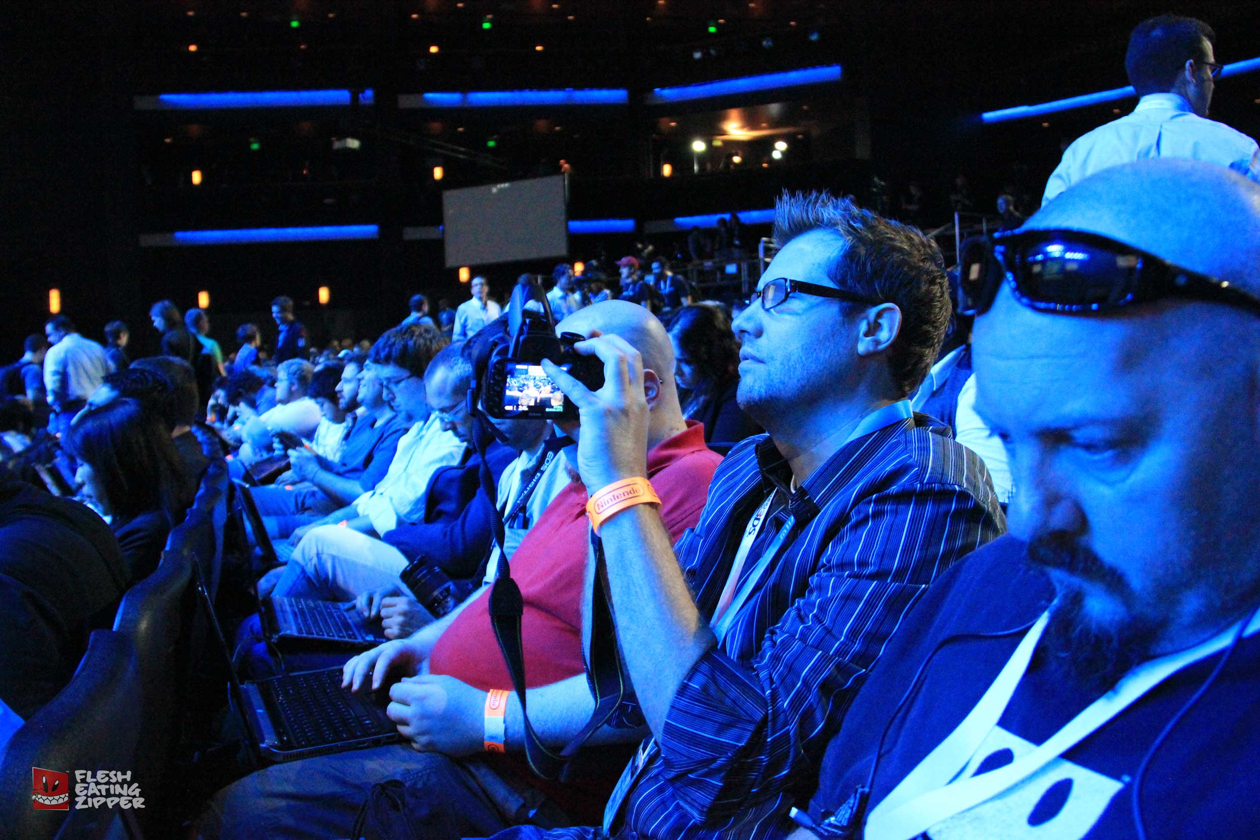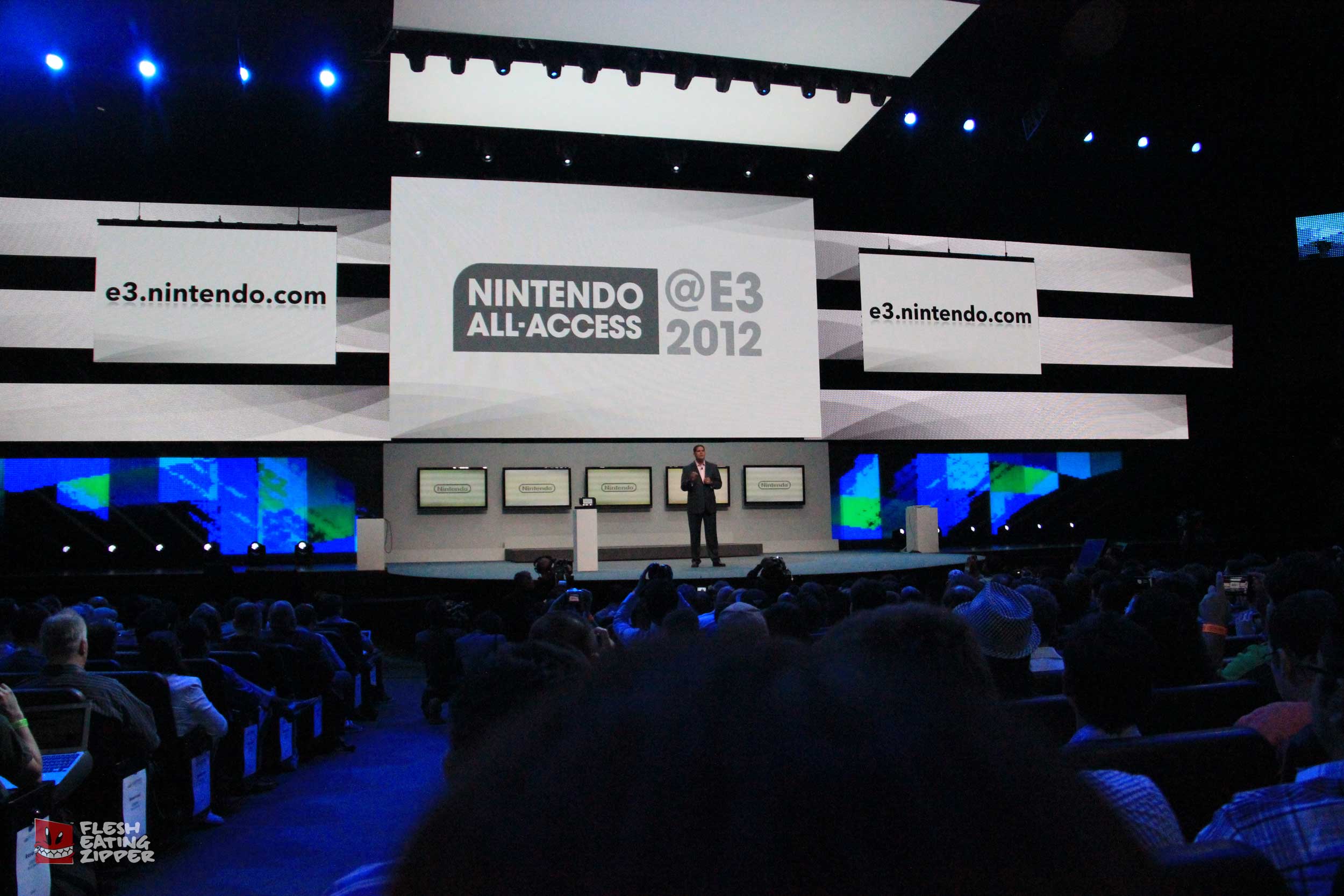 This morning Nintendo had their press conference and it wasn’t bad. Getting into the conference wasn’t easy even though we were all invited; I was having email issues because AT&T is having tower issues, Johnny’s barcode wouldn’t scan and security almost didn’t let Rob in. The seating was more comfortable and it was a lot cooler than the other conferences. Take a look at the images below and come back later tonight and we should have more from Keith and Johnny.