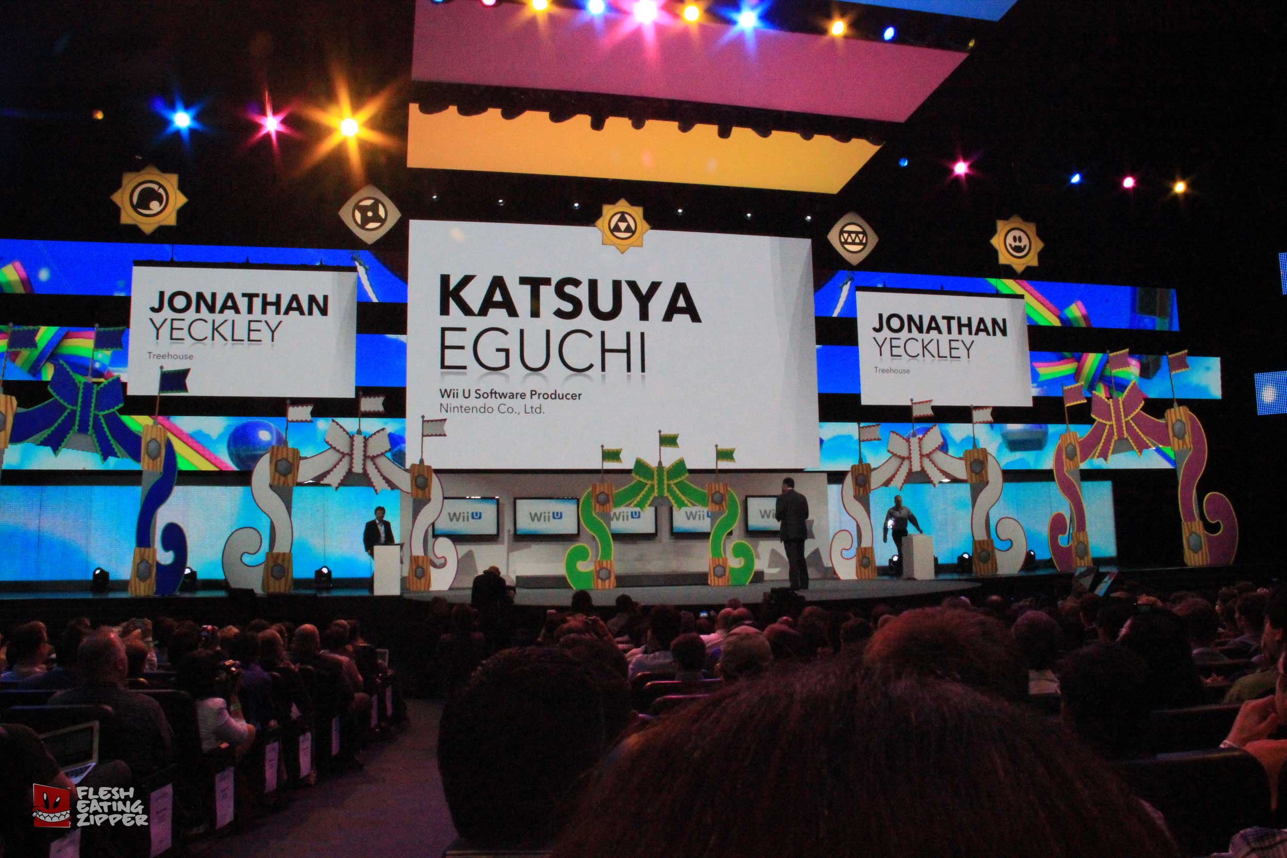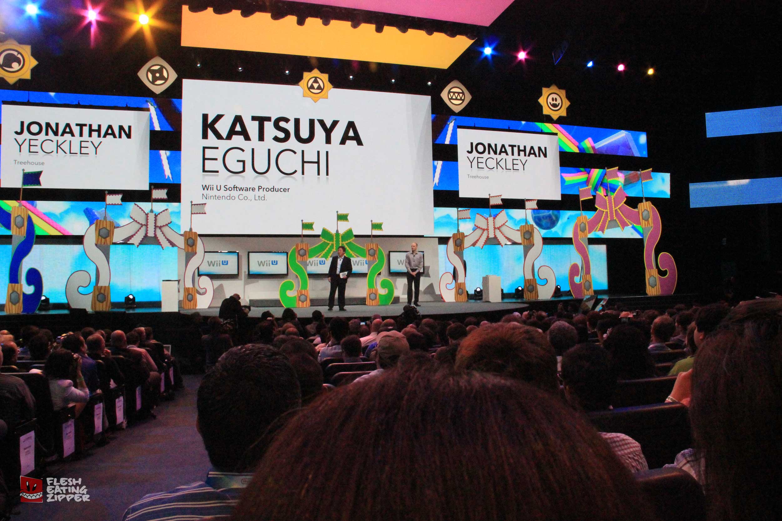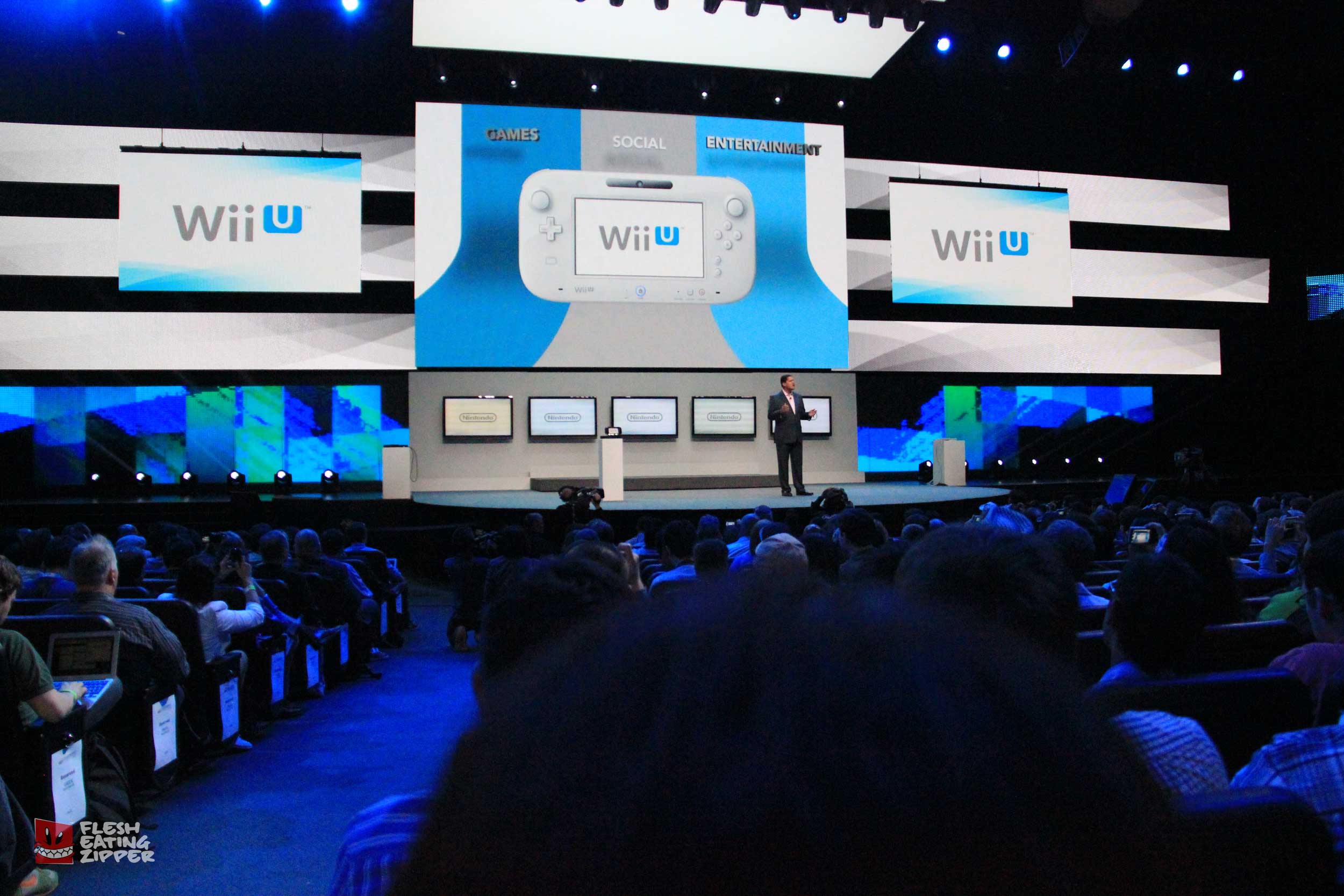 This morning Nintendo had their press conference and it wasn’t bad. Getting into the conference wasn’t easy even though we were all invited; I was having email issues because AT&T is having tower issues, Johnny’s barcode wouldn’t scan and security almost didn’t let Rob in. The seating was more comfortable and it was a lot cooler than the other conferences. Take a look at the images below and come back later tonight and we should have more from Keith and Johnny.