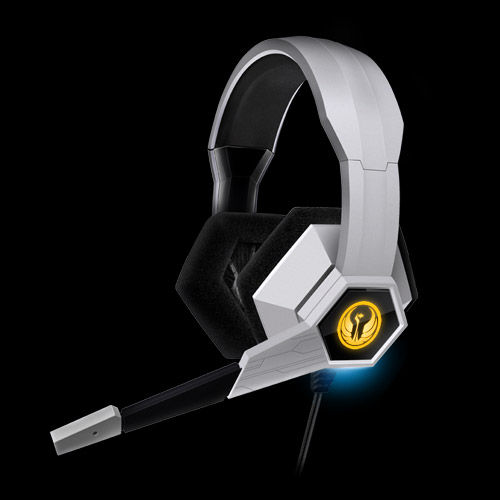 These headsets feature backlit faction logos, multicolor (adjustable) LED lighting and built in flip-up microphone so you can chat with your Sith buddies while you’re out there slaughtering Jedi. It also seems to come with a rare color crystal which will turn your lightsaber or blaster bolts green so you can kill your enemies with flair!