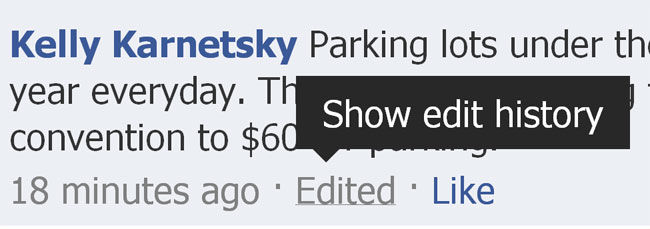 Facebook is now rolling out edit history across the board. What does that do exactly you might ask? Well, if you edit one of your comments it will keep a history of the changes for all to see. So if you are like me and quick to hit enter before you are done with thoughts then there will be a trail for everyone to look at. One thing I noticed was, if you delete a comment there is no history so might as well delete them and try again. That won’t help if you are trying to troll people though. Take a look at the screen shot below.