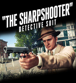 The Sharpshooter unlockable detective suit enhances your aim with rifles and pistols. Always a worst case scenario for any detective working a case, there are of course those occasions for Cole Phelps when pursuing a suspect escalates to gunfire. In these tense shootouts, the Sharpshooter suit provides that extra aiming precision to take the criminal down. This detective suit is yours if you pre-order with Best Buy or purchase the game at launch on May 17th (while supplies last).