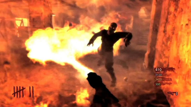 - DIE, ZOMBIE!!! BUUUURRRRRRN!!! Cooking the living dead in World at War.